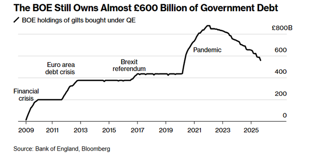英国央行仍持有近6000亿英镑的政府债务